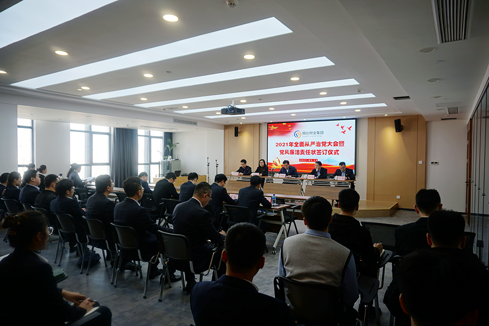 为全面落实从严治党要求,深入推进党风廉政建设,为集团高质量发展提供坚实的政治保障,3月12日下午,烟台财金集团组织全体干部职工召开2021年全面从严治党大会暨党风廉洁责任状签订仪式。会议由集团党支部副书记、总经理李辉主持。会上,集团党支部书记、董事长刘海彬对全面落实从严治党工作提出四点要求:一是强化...
