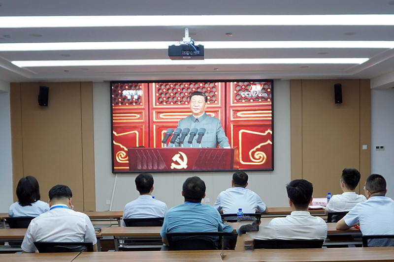 7月1日上午8时,庆祝中国共产党成立100周年大会在北京天安门广场隆重举行。中共中央总书记、国家主席、中央军委主席习近平发表重要讲话。烟台财金集团组织全体干部职工集中收看“七一”庆祝大会实况直播,共庆中国共产党百年华诞。