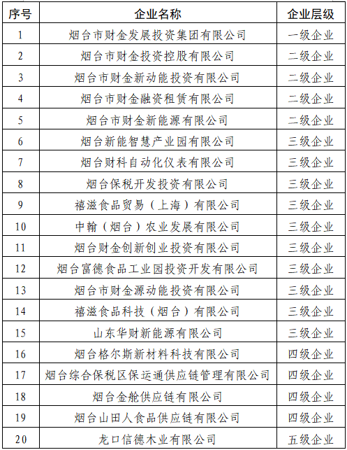 按照国家、省、市关于《综合整治假国企央企行动方案》的相关要求,现将烟台财金集团投资并表范围内国企名单(共计20户)予以公布,具体如下: