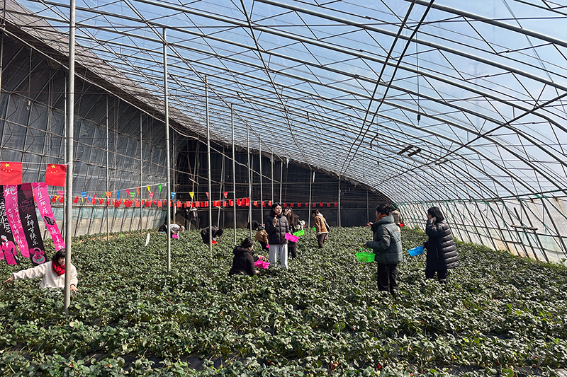 参观结束后,职工们走进草莓采摘园,在乡野田间亲近自然,体验草莓采摘乐趣,共享“莓”好节日时光。